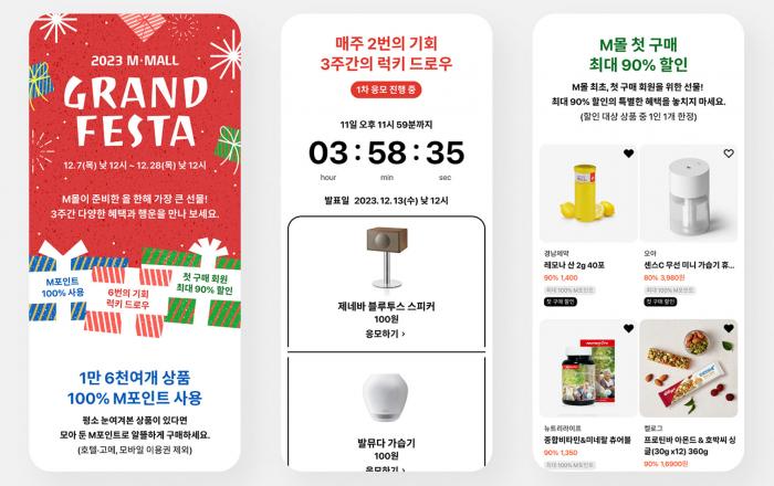 현대카드가 연말을 맞아 오는 28일까지 현대카드 M포인트 회원 전용 온라인 쇼핑 공간 M·MALL에서 ‘M-MALL(이하 M몰) 그랜드 페스타(GRAND FESTA)’를 진행한다고 7일 밝혔다. 먼저, 행사 기간 동안 호텔·고메와 모바일 이용권 카