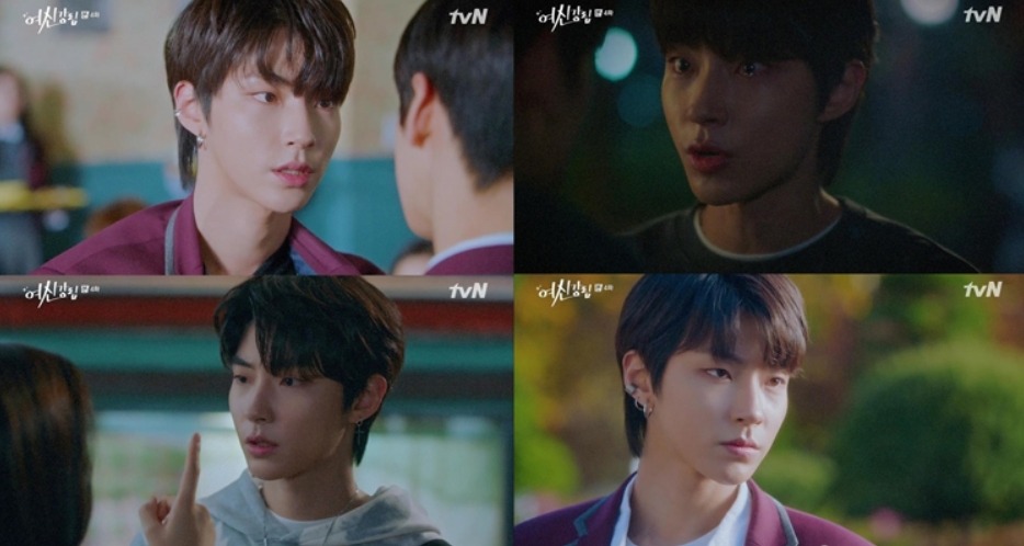 tvN 수목드라마 ‘여신강림(연출 김상협/ 극본 이시은)’에서 거친 야생마 매력을 쏟아내는 한서준 역을 맡은 황인엽이 차은우와 날카로운 대립각을 세움과 동시에 문가영을 향한 삼각 로맨스에 불을 당긴 것.