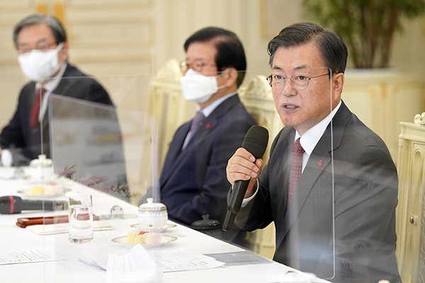 문재인 대통령이 22일 오전 청와대에서 열린 ‘5부요인 초청 간담회’에서 발언하고 있다. (사진=청와대)