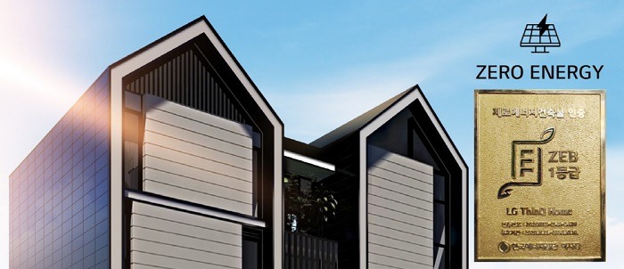 LG전자 'LG 씽큐 홈' 이 국내 최초로 제로에너지건축물 본인증(本認證) 1등급을 받았다.