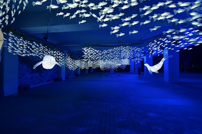 문화비축기지 문화마당에 들어서면 제일 먼저 아트스페이스 용궁을 만나게 된다. ‘오천 마리의 정어리 떼’가 줄지어 유영(遊泳)하는 사이로 ‘대형 거북이’와 ‘바다사자(강치)’가 노니는 모습을 한지등(燈)으로 제작하였는데 환상의 바다 속을 그대로 옮겨놓았다.
