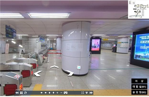 「스테이션뷰(VR)」서비스는 네이버지도의 거리뷰, 카카오지도의 로드뷰처럼 도시철도 역 내부를 화살표를 클릭하여 움직이면서 교통약자 이동 및 환승경로, 각종 안전ㆍ편의시설, 역 주변 주요 시설물 등의 위치를 확인 할 수 있다.