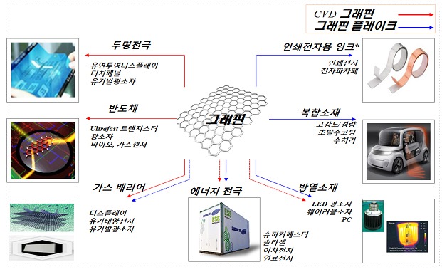 그래핀은 탄소가 0.2나노미터(nm) 두께 벌집모양의 단층 평면구조로 결합된 나노 물질로 전도성이 구리보다 약 100배 뛰어나고, 열전도성은 다이아몬드의 2배 이상으로 초고속 반도체, 디스플레이, 태양전지, 2차전지 등에 사용되는 첨단소재다.