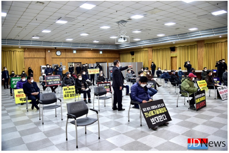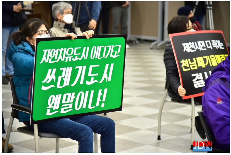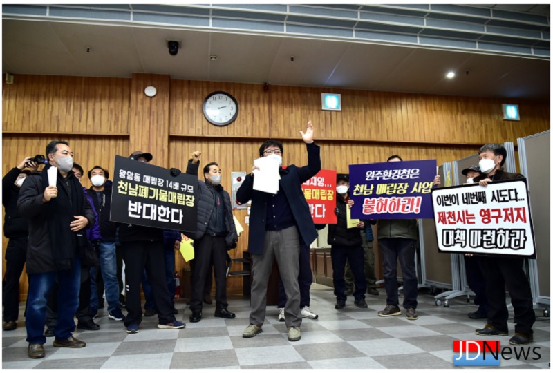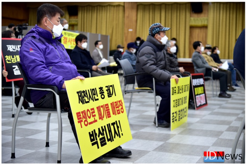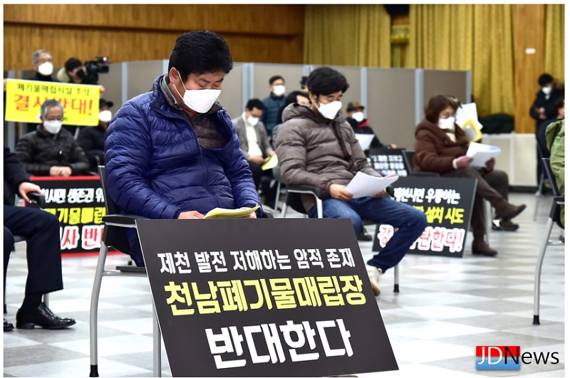 JD News 이용희 기자 = 충북 제천시 천남동에 들어서는 대규모 민간 폐기물매립장 조성사업에 대한 주민설명회가 참석자들이 강력한 반대로 제대로 열리지도 못하고 파행됐다.