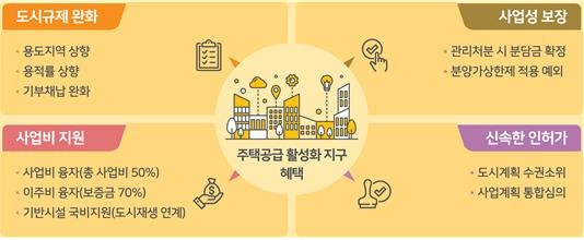 해당 사업구역에는 △용적률 상향(법적상한의 120% 허용) 등 도시규제 완화 △분양가상한제 적용 제외 등 사업성 개선 △사업비 융자 △인허가 절차 간소화 등의 각종 공적지원이 제공되며,