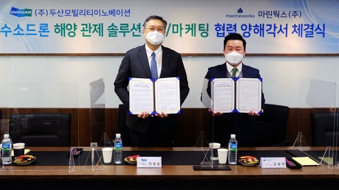 두산모빌리티이노베이션(이하 DMI)이 두 시간 이상 비행이 가능한 수소드론을 활용해 바닷길 관제 솔루션을 개발한다.