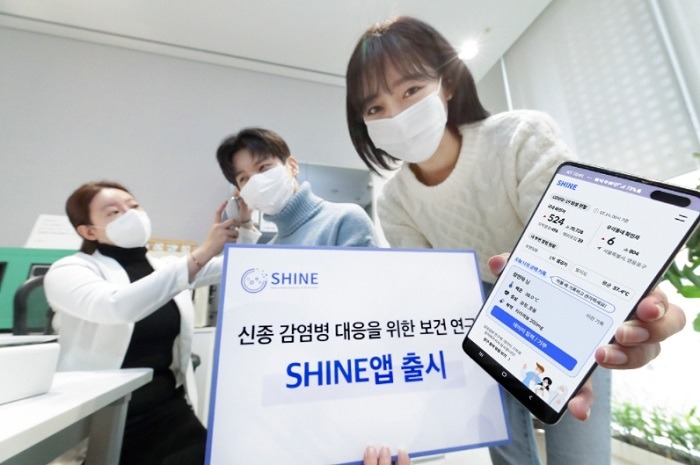 SHINE 앱은 사용자 주변의 코로나19 등 질병 발생 현황을 알려주며 발열, 두통, 기침 같은 독감 유사 증상을 입력하면 감염병 위험도를 확인할 수 있다. 사용자가 입력하는 데이터는 블록체인을 적용하여 안전하게 보관되며, 연구참여 의사를 밝힌 사용자에 한해 감염병 확산 연구에 활용된다.