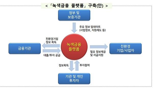 또한 녹색기업·사업 참여자 간 정보공유 및 자금중개 등을 원활히 뒷받침하기 위한 ‘(가칭)녹색금융 플랫폼’ 구축을 상반기중 검토, 금융기관 및 투자자들에 대해 녹색기업·사업 관련 필요한 정보를 제공함으로써 원활한 녹색투자 환경을 조성한다.