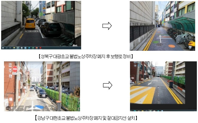 서울시는 그간 주택가나 상가 주변 주차공간이 크게 부족하다보니 불법임에도 노상주차장을 바로 폐지하지 못해왔으나, ‘민식이법’ 시행 등 어린이 안전에 대한 사회적 관심이 최고에 이른 만큼 학교 앞 주통학로 불법 노상주차장 전체 48개소 417면을 완전히 삭선 하여 어떤 경우라도 어린이보호구역에서 불법주정차는 있을 수 없다는 강력한 의지를 나타냈다.