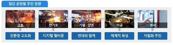 ‘스틸 AI 추진방향’에 따라 철강산업의 디지털 전환은 ▲제조 공정별 디지털 전환 가속화 ▲철강 생태계의 지능화 ▲안전·환경문제 해결 등 3가지 방향에서 중점 추진될 예정이다.