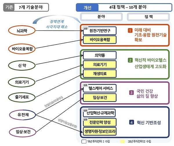 10개 분야는 원천·기반연구, 바이오융복합, 의약품, 의료기기, 첨단재생의료, 헬스케어서비스, 임상·보건, 산업혁신·규제과학, 전문인력양성, 생명자원·정보인프라 등이다.