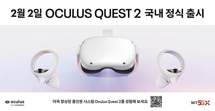 SKT가 페이스북의 최신형 혼합현실 기기인 ‘오큘러스 퀘스트2’에 대한 국내 유통권을 확보하고, 오는 2월 2일부터 SKT 5GX 홈페이지 및 전국 SKT 매장 등에서 공식 판매 한다고 밝혔다.