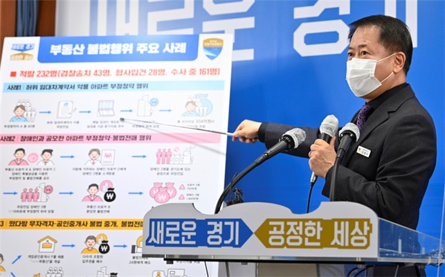 한편, 지난 2019년 4월 신설된 경기도 공정특별사법경찰단 부동산수사팀은 지난해까지 아파트 부정청약(위장전입, 허위임신진단서, 장애인특별공급 악용 등), 분양권 불법전매 브로커, 집값담합, 무등록 중개업자(떴다방) 등 총 1,403명을 적발한 바 있다.