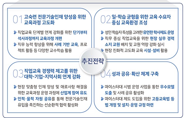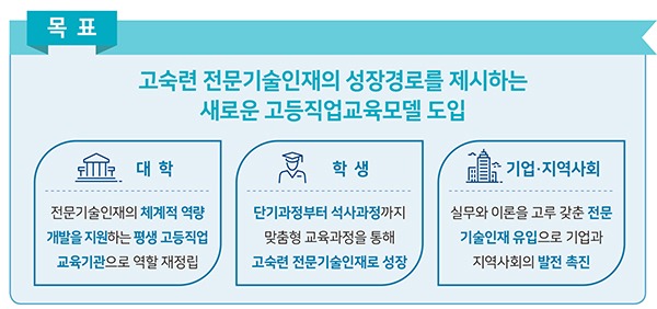 교육부가 고숙련 전문기술인재의 성장경로를 제시하고 새로운 고등직업교육모형 도입을 위한 ‘마이스터대 시범운영 사업 기본계획’을 발표했다.