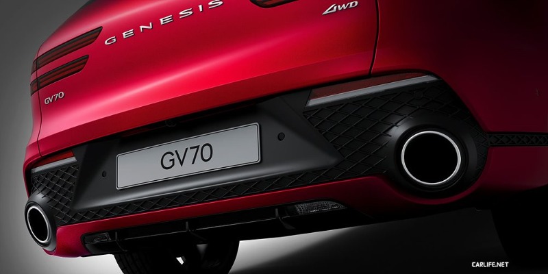 선택 사양인 스포츠 패키지는 GV70의 멋을 한층 높인다. 앞면의 경우 에어 인테이크 면적을 키우는 동시에 다크 크롬 그릴, 입체적인 형상의 스키드 플레이트로 공격적인 분위기를 연출한다. 뒷면은 직경이 큰 원형 머플러 팁을 삽입하고 범퍼 형태를 위아래로 나눠 퍼포먼스 SUV와 다를 바 없는 생김새로 만들어 준다. 휠은 19인치 또는 21인치 전용 휠이 장착된다.