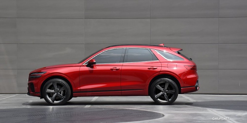 세부적으로 앞면은 제네시스 로고에서 비롯된 윙 페이스 디자인이 특징이다. 램프와 그릴 위치를 동일선상에 배치해 당찬 인상을 자아내는 한편, 범퍼 양 끝단에 자리한 에어 커튼과 하단을 가로지르는 크롬 몰딩으로 도로 위 존재감을 강조한다. 옆면은 A필러에서 트렁크 도어 끝부분까지 이어지는 매끄러운 루프 라인이 압권으로, 쿠페형 SUV 못지않은 실루엣을 드러낸다. 아치형 크롬 윈도 몰딩과 두툼한 C필러 그리고 차체를 가로지르는 포물선 캐릭터 라인도 이런 스타일에 힘을 보탠다. 뒷면은 헤드램프와 흡사한 테일램프 디자인으로 통일성을 살렸다. 리플렉터, 파킹센서, 플레이트 등 반드시 있어야 하는 요소들은 범퍼 하단으로 몰았다. 덕분에 모양새가 어수선하지 않고 간결하다.