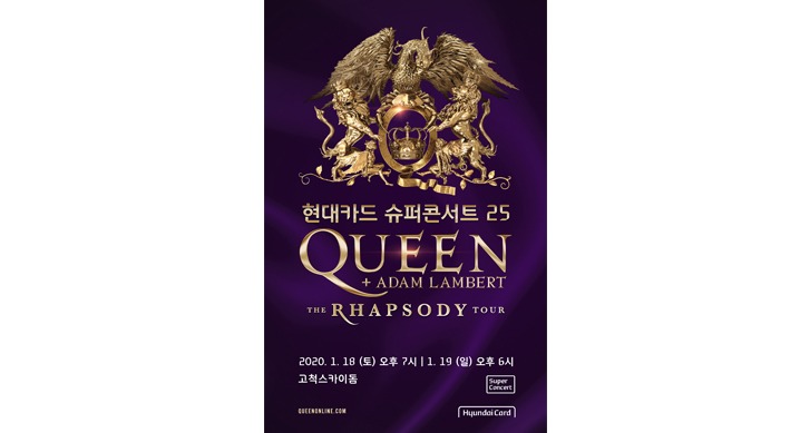 현대카드가 2020년 1월 18일(토)과 19일(일) 양일간 <현대카드 슈퍼콘서트 25 QUEEN>을 개최한다고 16일 밝혔다. 이번 현대카드 슈퍼콘서트는 퀸(QUEEN)의 첫 단독 내한공연으로 서울 고척스카이돔에서 진행된다.