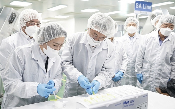 문 대통령의 현장 방문에는 권칠승 중소벤처기업부 장관, 김강립 식품의약품안전처장 등 정부 관계자들과 LDS 주사기 공급 업체인 신아양행, 두원메디텍 경영진도 함께했다. 또한 백신주사기 생산공정 효율화를 지원하는 삼성전자 스마트공장지원센터 관계자도 참석했다.