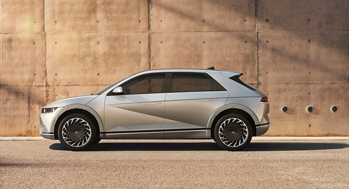 측면의 경우 포니를 연상시키는 실루엣을 바탕으로 직선으로 곧게 뻗은 캐릭터 라인과 동급 최장인 3,000mm의 축간거리가 시선을 사로잡으며, 현대자동차 전기차 역대 최대 직경이자 공기 역학 구조를 적용한 20인치 휠은 완벽한 전기차 비율을 선보인다.