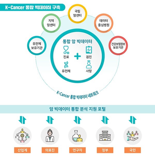 이 첫걸음으로 전체 암 환자데이터의 70%를 차지하는 300만명 규모의 한국인 주요 암 10종에 대해 전국 암 병원의 암 진료데이터(영상 포함)와 건강검진 데이터, 유전체 데이터, 사망통계 등을 연계한 한국형 암(K-Cancer) 통합 빅데이터를 구축할 예정이다.