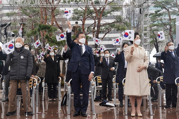 문 대통령은 이날 서울 종로구 탑골공원에서 열린 3·1절 기념식에 참석, 기념사를 통해 “국민의 생명과 안전을 지키기 위한 동북아 방역·보건협력체 참여를 시작으로 북한이 역내 국가들과 협력하고 교류하게 되길 희망한다”며 이같이 밝혔다.