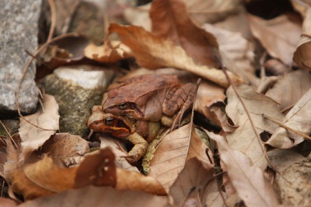 남산에는 산개구리를 비롯해 참개구리, 옴개구리 등 8종의 개구리가 서식하고 있는데 산개구리는 그중에서도 가장 먼저 산란을 시작한다.