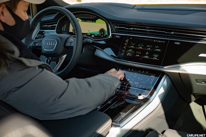 다소 아쉬움이 느껴지는 장식요소들을 뒤로하고 실내에 들어서면 언제 그랬냐는 듯 다시 눈이 즐거워진다. 고급스러운 가죽에 아우디만의 하이테크 디자인, 햅틱 방식으로 작동되는 터치패널들 덕분이다. 첫인상은 화려하지만 사용할수록 친근하고 오작동 위험이 없으며, 사용자 친화적이다. 이 부분 역시 개발자들이 고민한 흔적일 테다. 여기에 각종 옵션들도 빠짐 없다. 반 자율 주행기능을 시작으로 열선 및 마사지 기능이 달린 통풍시트, 뒷좌석 측면커튼을 포함해 HUD까지. 고급차로서 품어야 할 장비들은 모두 품었다. 포르쉐처럼 옵션 고민할 필요가 없다. 카이엔 쿠페에 이 기능을 다 담으려면 1억5천이 넘는다.