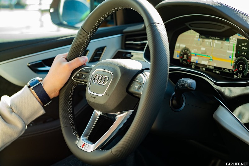 다시 외관으로 돌아와 디자인을 마저 살펴보면 멋스러운 분위기에 비해 다소 아쉬운 부분들도 눈에 띈다. 우선은 21인치 휠·타이어를 19인치처럼 보이게 만드는 착시효과다. 커다란 덩치 탓에 무려 21인치 휠을 신었어도 그 멋스러움이 온전히 표현되지 않았다. 편평비가 높아 승차감 향상에는 도움이 되겠지만 스타일에서는 한풀 꺾이는 모양새다. 또한 페이크 머플러에 와서는 고성능 분위기가 차갑게 식어버린다. 참고로 Q8 55 TFSI의 엔진은 V6 3.0L 터보. 최고출력 340마력, 최대토크 51.0kg·m이다. 고출력에 대한 접근이 쉬워진 요즘이지만 여전히 300마력은 매력적이고 충분한 고성능이다.