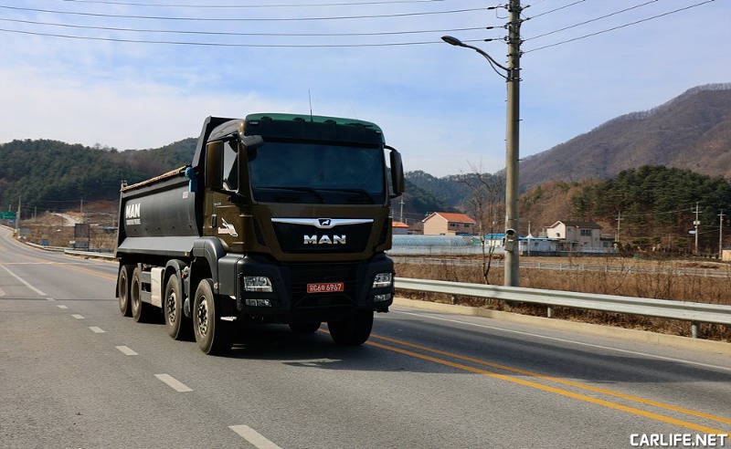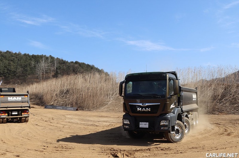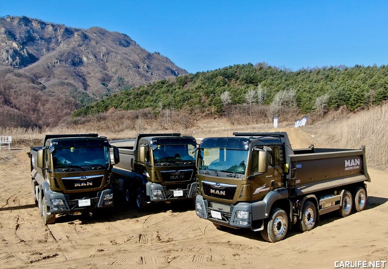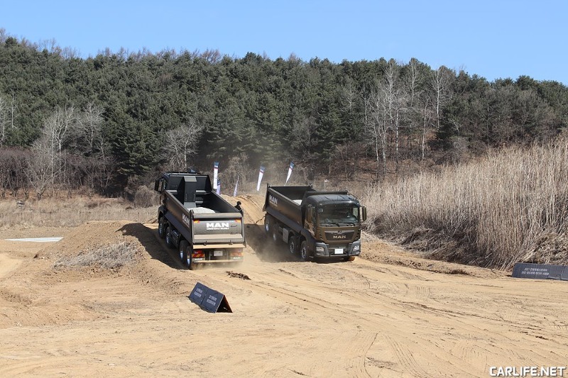 만트럭버스코리아가 뉴 MAN TGS 덤프트럭의 출시를 알리기 위해 경기도 포천 레이스웨이에서 시승행사를 개최했다. 신형 유로 6D 엔진을 탑재한 이 차는 주행성능과 경제성을 동시에 높인 것이 특징이다.