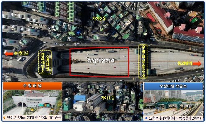 부산시는『도시활력증진사업』의 일환인 ‘수정터널 상부공간 연결(공원화) 사업”이 마무리됨에 따라 9월 9일 오후 4시에 가야 감고개공원에서 시장, 지역구 국회의원, 지역주민 등 300여 명이 참석한 가운데 준공식을 개최한다고 밝혔다.