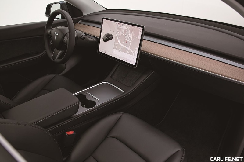 실내에 앉아보면 높아진 차고를 실감할 수 있다. 본격적인 오프로드용 SUV처럼 높디높은 시트고는 아니지만 도로를 한결 편한 높이에서 내려다볼 수 있다. 그 외에는 모델 3와 동일한 특징을 보여준다. 인테리어에서 가장 큰 비중을 차지하는 것은 대시보드 중앙에 자리 잡은 15인치 터치 디스플레이. 램프 조절부터 프렁크 개폐 및 사이드미러 폴딩까지 일반 자동차들이 물리버튼을 사용하는 기능까지 모두 모니터에 담았다. 덕분에 자잘한 버튼을 만들지 않아 부품 비용을 줄일 수 있었고, 동시에 하이테크한 분위기도 만들어냈다. 게임체인저다운 면모다.
