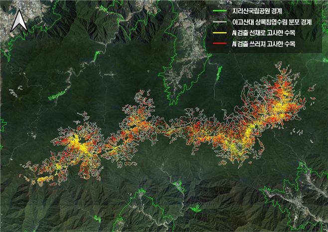 또한 새로 촬영한 항공영상만 있다면 지리산 전역의 고사목 정보를 단 몇 시간 안에 파악할 수 있다.
