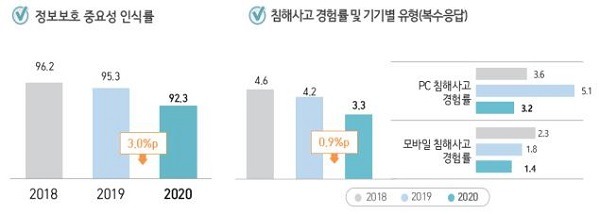 과학기술정보통신부와 한국정보보호산업협회(이하 협회)는 기업과 개인의 정보보호 인식 및 침해사고 예방·대응 활동 등에 대한 ‘2020년 정보보호 실태조사’ 결과를 16일 발표했다.