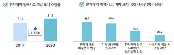IP카메라 이용자들은 ‘관리자 계정의 비밀번호 변경’, 기기 최신버전 업데이트, IP카메라 접근 디바이스 보안설정 등의 조치를 했다.