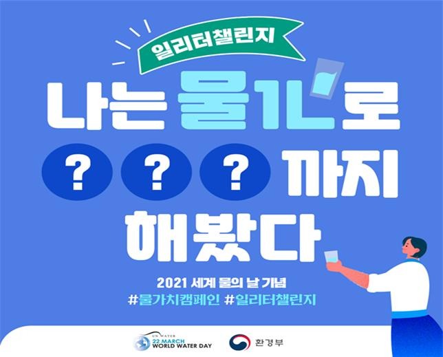 국민들이 물의 소중함을 깨우칠 수 있도록 ‘나는 물 1ℓ로 ㅇㅇㅇ까지 해봤다’라는 1ℓ 도전(챌린지) 행사를 이번 달 한 달 동안 환경부 블로그, 페이스북 등 사회관계망서비스(SNS)에서 진행하고 있다.