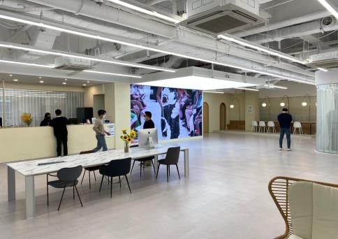 중앙홀에는 대형 LED 모니터(가로 510cm×세로 275cm)와 피팅룸, 파우더룸도 있어 라이브커머스를 진행하기에 최적의 장소이기도 하다. 모니터에 제품 이미지 영상이나 실제 착용 사진을 표출해 생동감을 높일 수 있다.