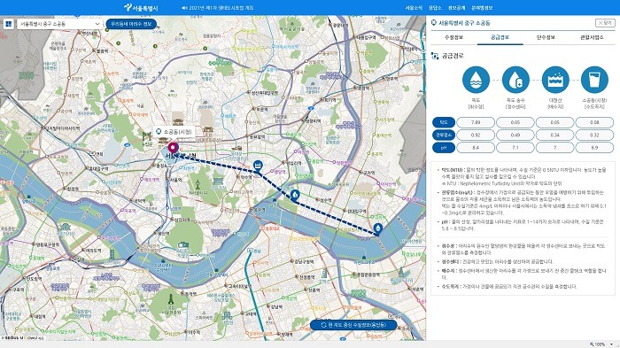 2019년부터 서비스를 시작한 ‘아리수 맵’은 서울시 실시간 수돗물 정보 지도로, 한강 원수부터 우리 동네까지 수돗물 생산과 공급 전 과정의 실시간 수질 및 상수도 공사 정보 등을 시각적으로 제공해왔다.