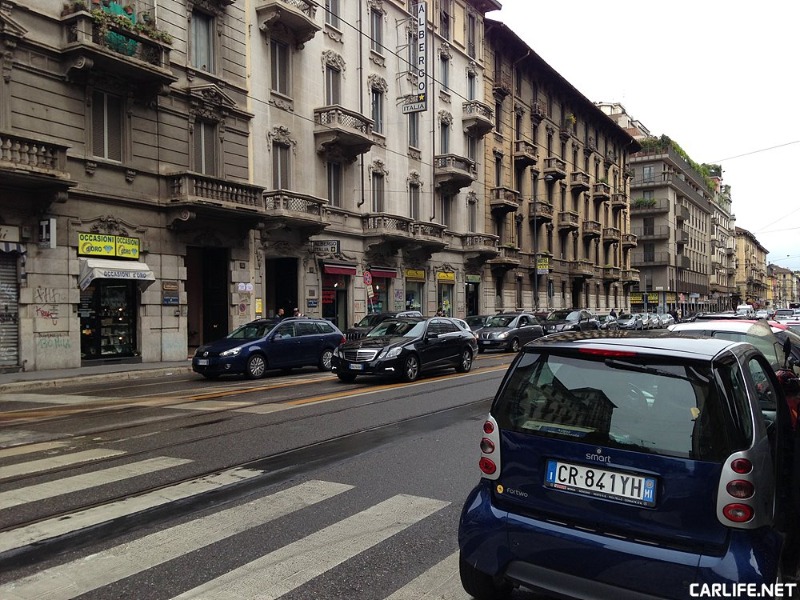 모데나에서 공식적인 일정을 마치고 밀라노로 이동할 때도 고속도로를 이용했다. 피아트 500 트윈에어는 연료통이 작아 중간에 주유를 두 번 정도 했다. 0.9L의 작은 엔진은 고속도로 주행에서 스트레스가 없지는 않다. 워낙 과속을 즐기는 운전들이 많다 보니 1차선은 거의 들어가지 못했다. 하지만 순발력과 연비가 좋은 편이라 밀라노 시내 골목골목을 누비는데 큰 문제가 없었다. 오히려 오래된 도시라 좁은 골목과 애매한 주차공간에서 피아트 500의 작은 차체가 이점이 많았다. 고속도로를 빠져나와 들어선 밀라노 입구는 생각보다 무질서한 편이다. 주로 서민들이 사는 구역이라 그런지 차들이 빽빽하게 주차된 모습을 쉽게 볼 수 있었고 오래된 도시의 낡은 모습이 눈에 띄었다.
