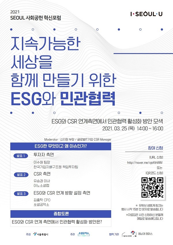 서울시, 지속가능 경영의 핵심인 ESG 주제로 「2021 서울 사회공헌 혁신 포럼」온라인 개최