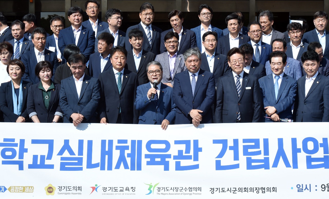보고대회는 도교육청과 도의회, 도청, 시군 지자체, 시군구 의회가 2020년 도내 150개 학교에 실내체육관 건립에 대한 교육협력사업을 확정하고 추진하는 것을 기념하는 자리다.