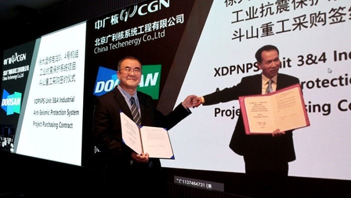 두산중공업이 중국 CTEC와 원전계측제어시스템(Man-Machine Interface System)의 주요 기자재인 지진자동정지설비(Industrial Anti Seismic Protection System) 공급 계약을 체결했다고 31일 밝혔다.