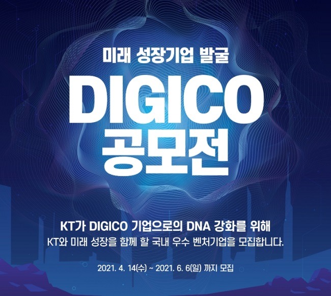 KT는 관악S밸리 조성 사업의 일환으로 유망 벤처·중소기업을 발굴하고 KT와 미래성장 사업을 공동 개발하는 ‘미래 성장기업 발굴 Digico 공모전’ 프로그램을 시행한다고 14일 밝혔다.