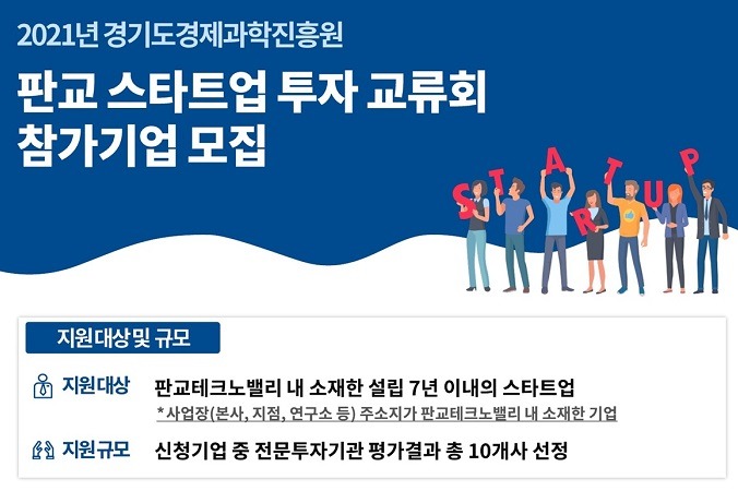 ‘투자 교류회’에 대한 자세한 내용은 경기도경제과학진흥원 창업진흥TF팀(031-8039-7106)으로 문의하면 된다.