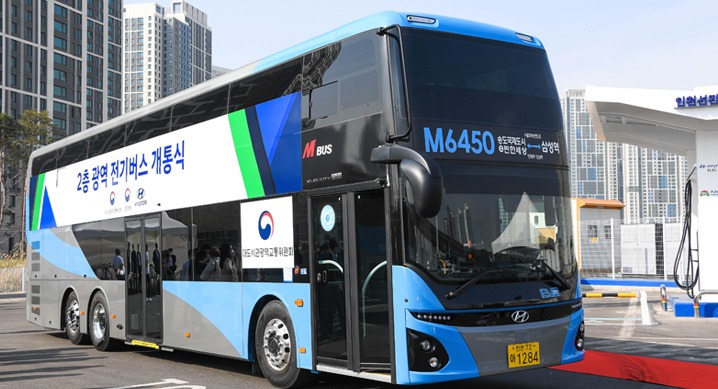 국내 최초의 이층 전기버스가 광역 노선을 누빈다.