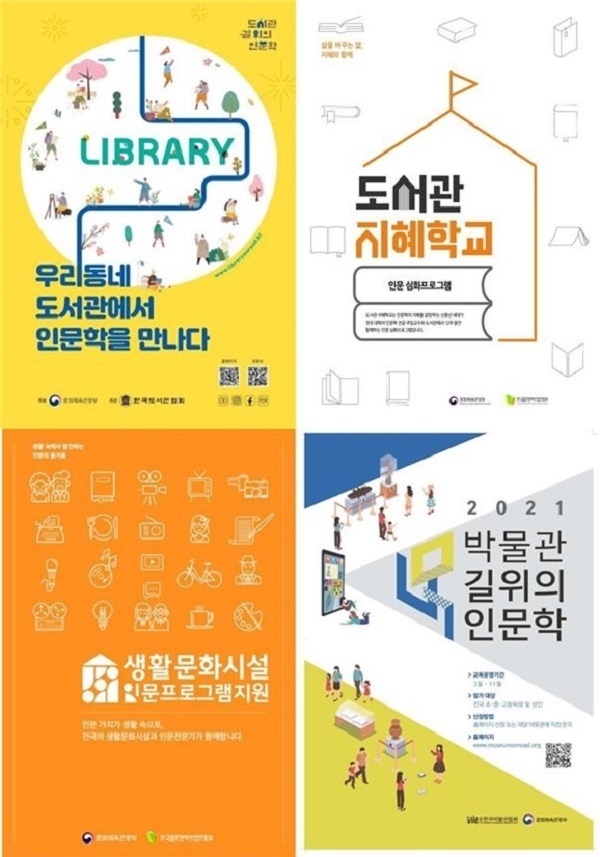2021년 ‘길 위의 인문학’은 ▲강연과 현장 탐방·체험활동을 연계한 ‘자유기획(300개)’, 중학교의 자유학년(기)제와 연계한 ‘자유학년(기)제(20개)’, 참여자 중심의 읽기 및 글쓰기 활동인 ‘심화과정(80개)’을 운영하는 ‘도서관 길 위의 인문학’ ▲지역 인문대학 강사 등 전문인력이 도서관에서 참여형·토론형 인문심화 프로그램을 운영하는 ‘도서관 지혜학교(100개)’ ▲지역의 생활문화시설과 미취업 인문 전문가가 협력·기획한 지역 주민 대상 인문 프로그램을 운영하는 ’생활문화시설 길 위의 인문학(120개)’ ▲박물관 소장품과 인문학을 접목한 교육·체험 프로그램 ‘박물관 길 위의 인문학(120개)’ 등 총 740개 프로그램을 진행한다.