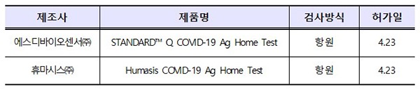 한편 이번 두 제품은 전문가가 아닌 개인이 손쉽게 자가검사를 할 수 있는 보조적인 수단으로 다양한 검사방법을 통해 감염 확산을 줄이기 위해 허가됐다. 다만 조건부 허가 제품은 정식허가 제품이 나오기 이전에 한시적으로 사용하는 제품이다.