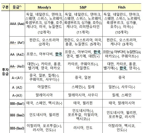 한편, S&P는 2016년 8월 한국의 국가 신용등급을 ‘AA-’에서 ‘AA’로 한 단계 상향 조정한 이후 이를 유지해오고 있다.