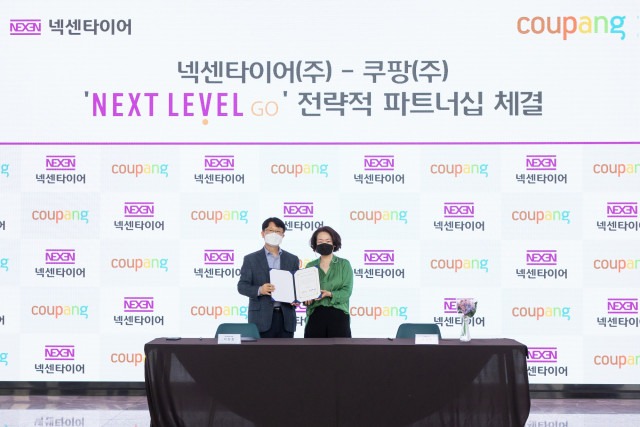 넥센타이어와 쿠팡은 이날 서울 마곡에 위치한 넥센 중앙연구소에서 넥센타이어 이현종 사장과 쿠팡 윤혜영 부사장 등 양사 임직원들이 참석한 가운데 파트너십 체결식을 했다.