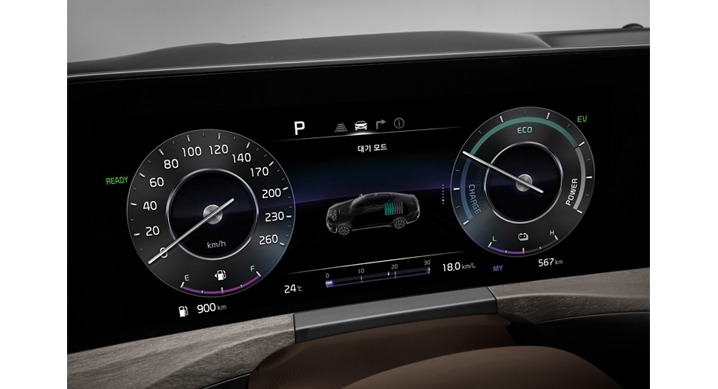 기아는 K8 하이브리드에 ▲하이브리드 전용 17인치 전면가공 휠 ▲후면부 하이브리드 엠블럼 ▲하이브리드 특화 클러스터 그래픽을 추가해 하이브리드의 개성을 더했다.