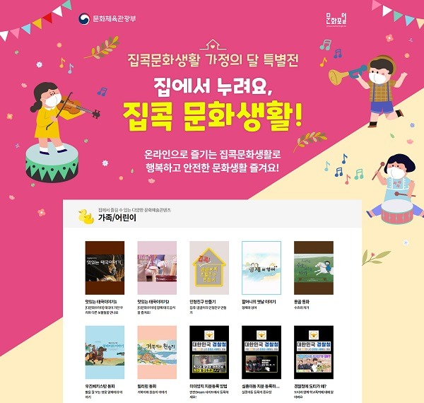 이번 ‘가정의 달 특집’을 통해 문체부는 여러 부처·기관과 협력해 다양한 비대면 콘텐츠를 무료로 제공하고, 집에서 코로나19로부터 안전하게 보낼 수 있도록 지원한다.